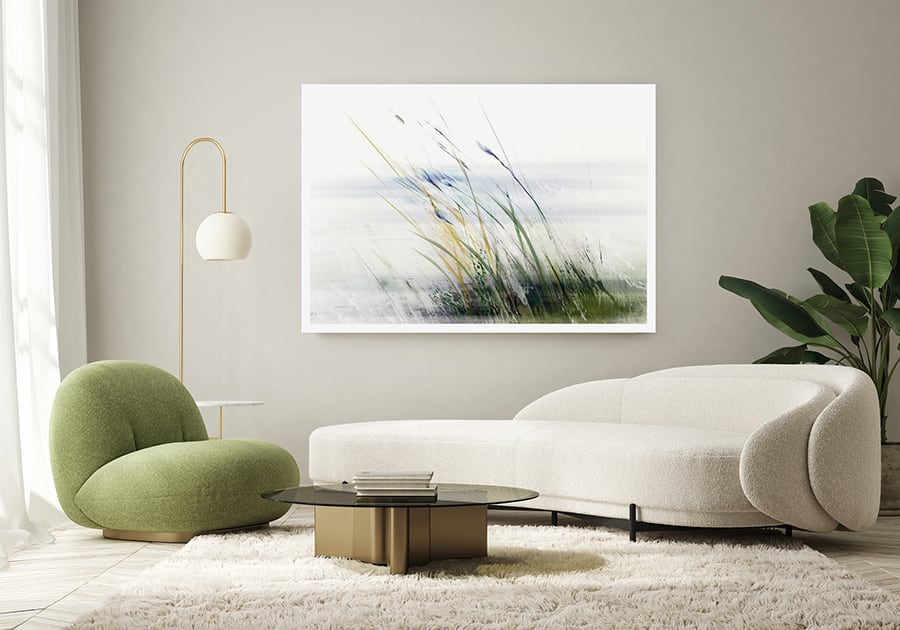 Seria Wodna: Lekkość i Energia Natury Seria Wodna wyróżnia się niebieską tonacją, lekkością rysunku i motywami lecących ptaków oraz traw. Te obrazy harmonijnie współgrają ze sobą, wprowadzając uniesienie i energię natury do wnętrza. Jasna, niebieska paleta barw ożywia atmosferę salonu lub sypialni.