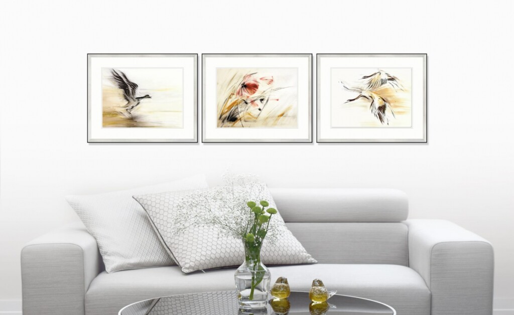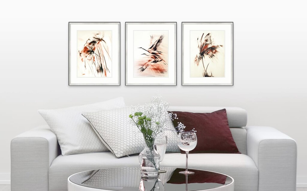 Elegancja i Lekkość w Twoim Domu: Obrazy Żurawi i Kwiatów od Anny Borkowskiej z Galerii w Chmurach