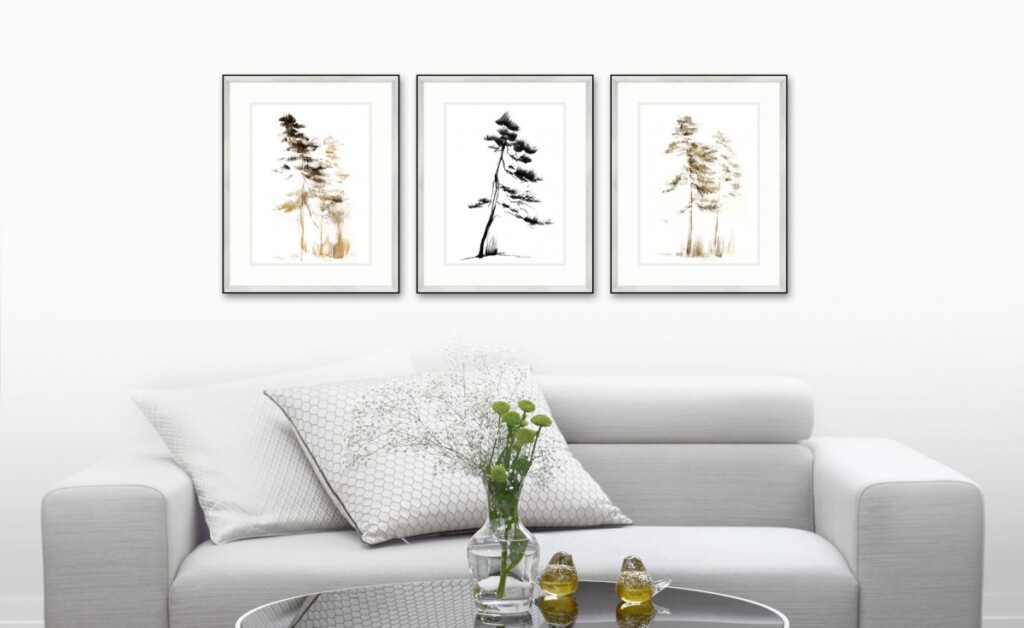 Seria Sosny: Minimalistyczna Elegancja. Stonowana kompozycja z motywem drzew. Minimalistyczny rysunek i uniwersalna kolorystyka czerni, beżu i ugru sprawiają, że tryptyk pasuje do większości wnętrz, dodając im elegancji i kontaktu z naturą. Idealna do salonu, sypialni i biura, seria ta podkreśla szlachetność i prostotę.